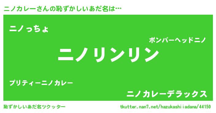 | 男性向けラノベタイトル風あだ名 | 『ダンジョンにニノカレーを求めるのは間違っているだろうか』 |
