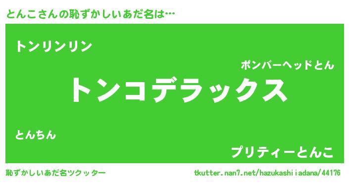 | 意味不明あだ名 | 『自称とんこ』『とにかく怪しいとんこ』 |