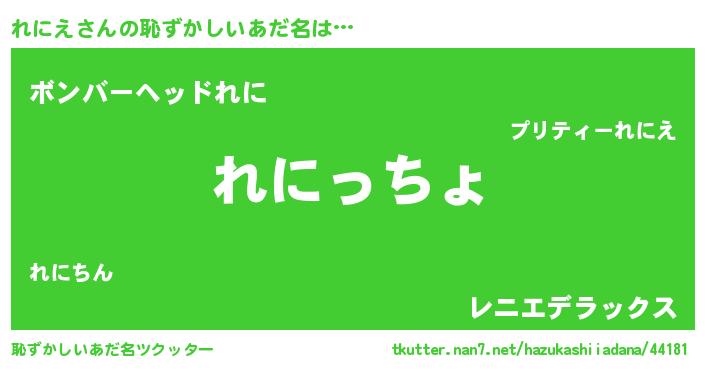 | 意味不明あだ名 | 『れにえフォーエバー』『自称れにえ』 |