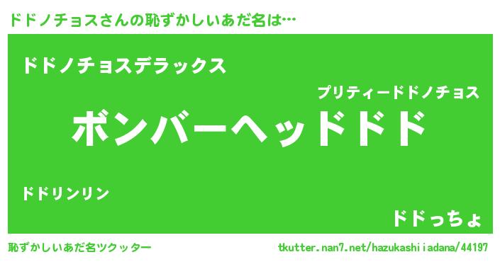 | 女子向けラノベタイトル風あだ名 | 『死神ドドノチョスの再婚』 |