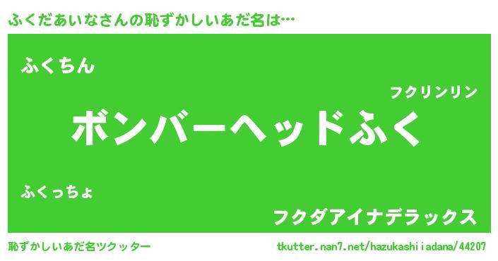 | ヘコむあだ名 | 『ふくだあいな(震え声)』『ふくお』 |