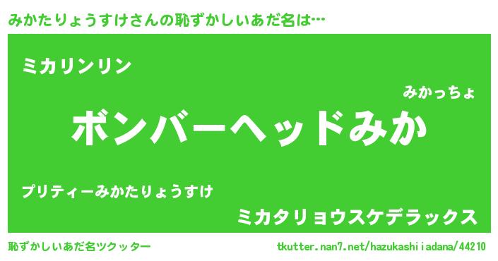 | ヘコむあだ名 | 『みかっ子』『豆乳』『みかにゅー』 |