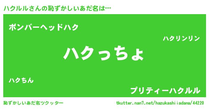 | 意味不明あだ名 | 『ハクルルフォーエバー』 |