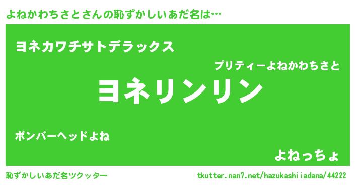 | ポケモン風あだ名 | 『ヒヨネカワチサト』『ヨネゴンZ』 |