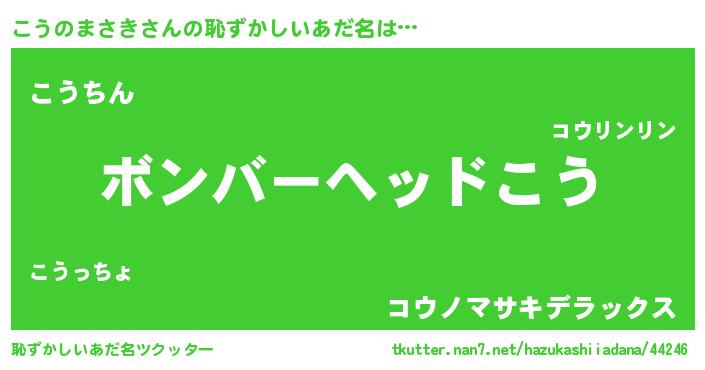 | ヘコむあだ名 | 『こうのまさき(遠い目)』『こうぷりん』 |