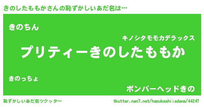 | ヘコむあだ名 | 『きのふぇ~』『きのしたももか(笑)』 |