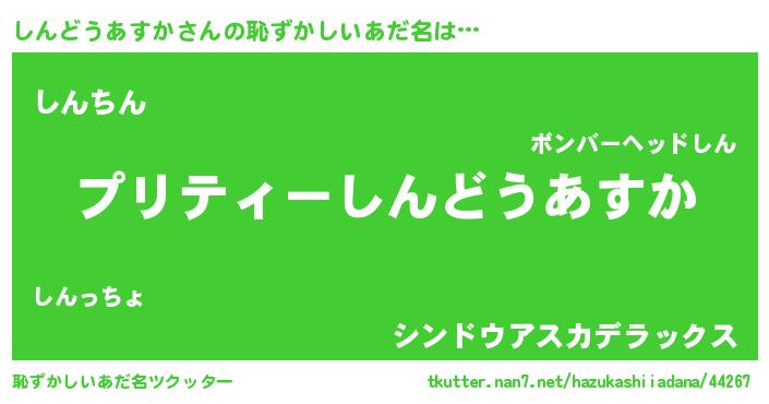 | ヘコむあだ名 | 『しんにー』『しんどうあすか(遠い目)』 |