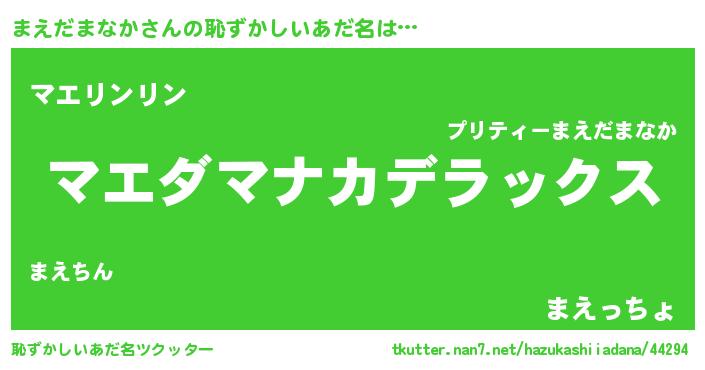 | 男性向けラノベタイトル風あだ名 | 『この素晴らしい世界にまえだまなかを!』 |