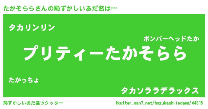 | 胡散臭い通販商品みたいなあだ名 | 『モテモテ間違いなし水晶球…その名も「たかそらら」』 |