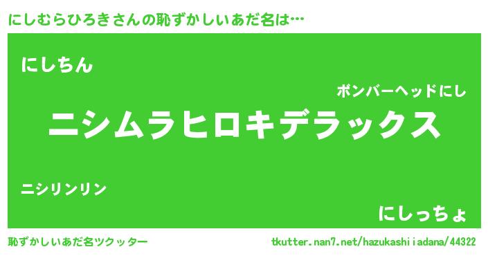 | 意味不明あだ名 | 『自称にしむらひろき』 |