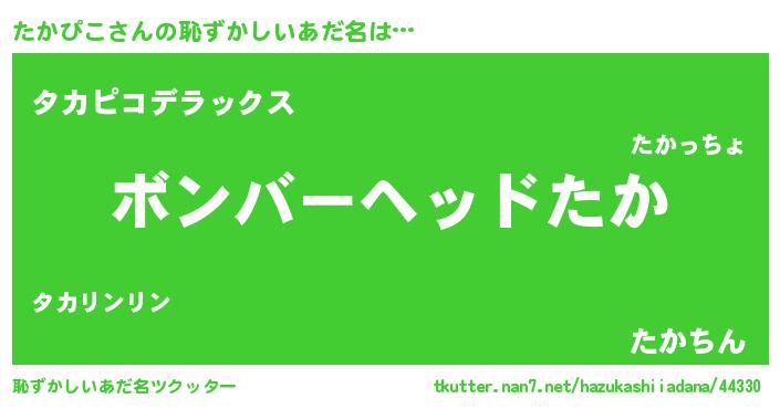 | ヘコむあだ名 | 『たかぴこ(爆)』『なまこ酢』 |