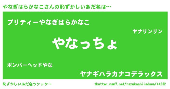 | 肩書あだ名 | 『やなぎはらかなこ上級大将』 |