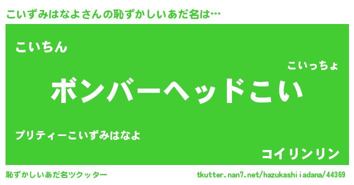 | ヘコむあだ名 | 『こいずみはなよ(苦笑)』『こい太郎』 |