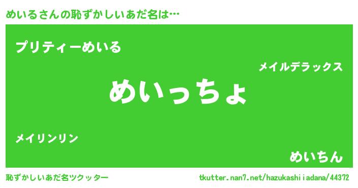 | 意味不明あだ名 | 『めいるフォーエバー』『ペロリンめいる』 |