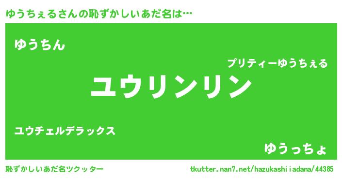 | ヘコむあだ名 | 『ゆう太郎』『ゆうちぇる(笑)』 |