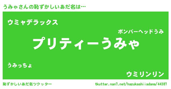 | ヒーロー風カッコイイあだ名 | 『スーパーウミャ』『超時空戦士ウミャ』 |