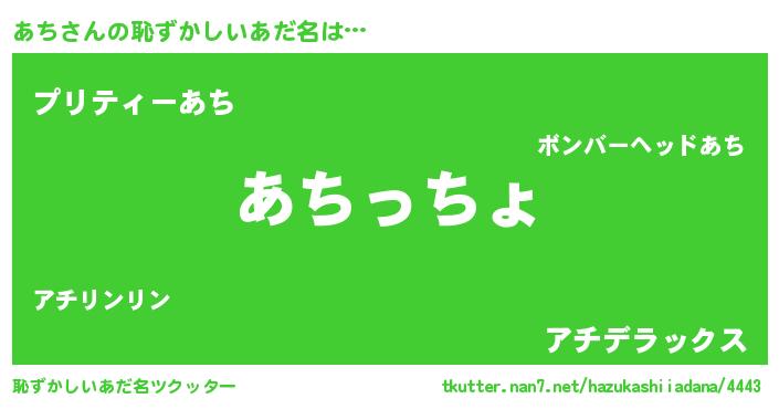 | 意味不明あだ名 | 『住所不定無職あち(81歳)』『ペロリンあち』 |