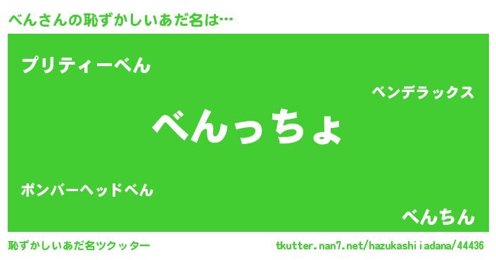 | ヘコむあだ名 | 『レバニラ』『べんにー』『べんっぺ』 |