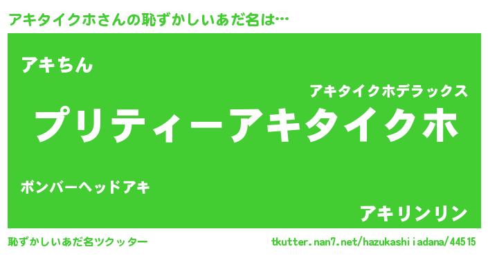 | ヘコむあだ名 | 『アキにー』『アキタイクホ(笑)』 |