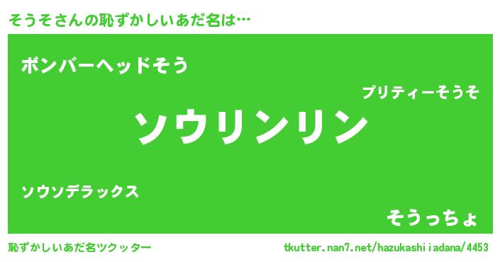 | 意味不明あだ名 | 『とにかく怪しいそうそ』 |