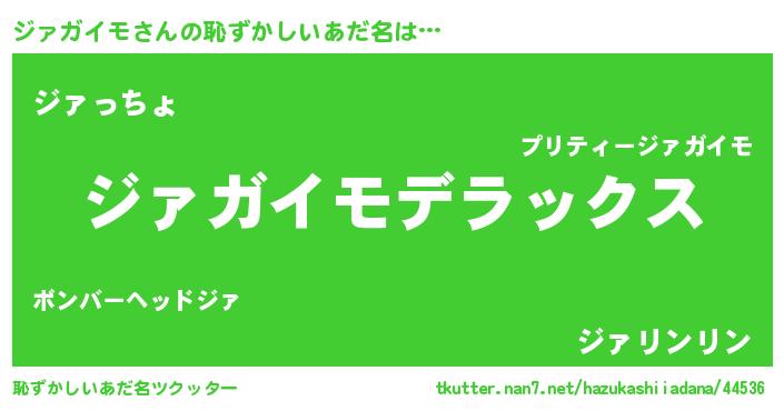 | ヒーロー風カッコイイあだ名 | 『最強戦士ジァガイモ』『仮面ジァダー』 |