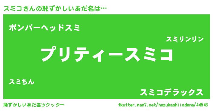| ヒーロー風カッコイイあだ名 | 『スーパースミコ』『仮面スミダー』 |