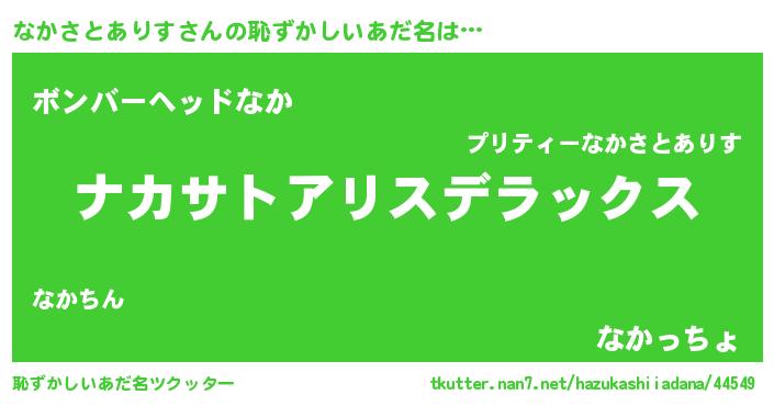 | 意味不明あだ名 | 『たけのこ科なかさとありす属』 |