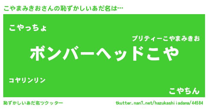 | ヘコむあだ名 | 『レバニラ』『こやまみきお(苦笑)』 |