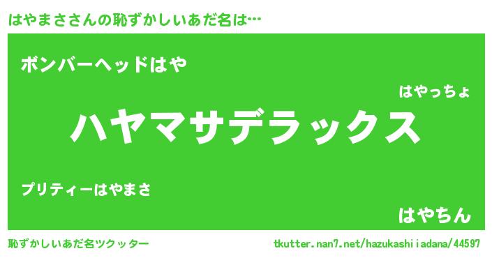 | ヘコむあだ名 | 『はやまさ(遠い目)』『豆乳』 |