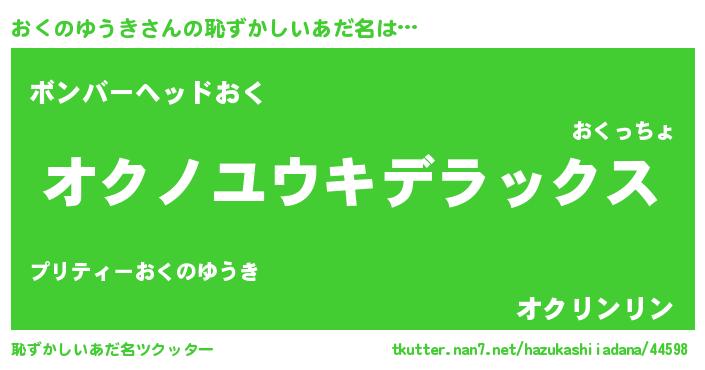 | 意味不明あだ名 | 『自称おくのゆうき』 |