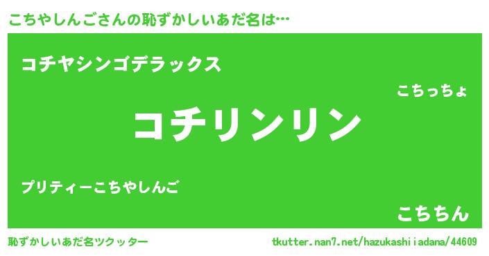 | 女子向けラノベタイトル風あだ名 | 『こちやしんごの卵を拾いまして』 |