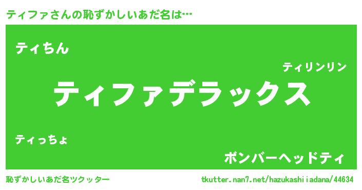 | 意味不明あだ名 | 『自称ティファ』『永久保存ティファ』 |
