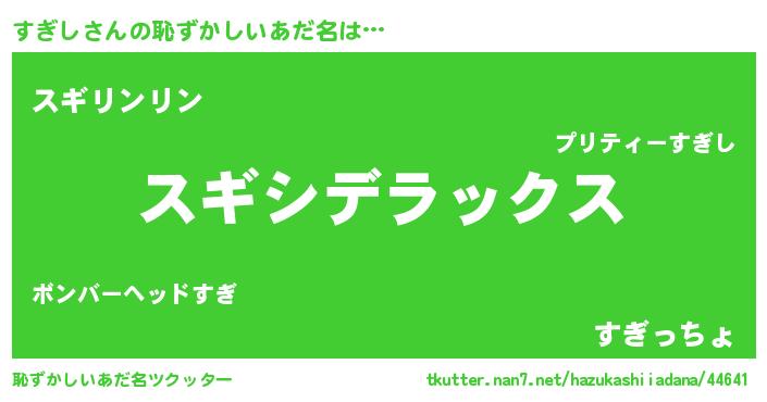| ポケモン風あだ名 | 『スギセウス』『ヒスギシ』 |