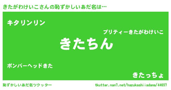 | ヘコむあだ名 | 『きたがわけいこ(苦笑)』『きたを』 |