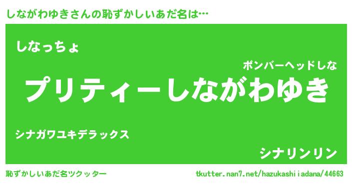| 意味不明あだ名 | 『住所不定無職しながわゆき(71歳)』 |