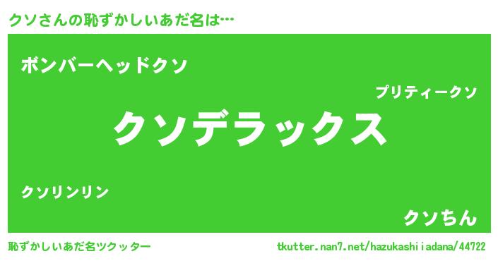 | ヒーロー風カッコイイあだ名 | 『サイバー戦士クソ』『仮面クソダー』 |