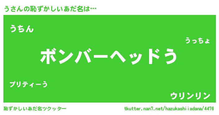 | ヘコむあだ名 | 『う(遠い目)』『うっぺ』『つくし』 |