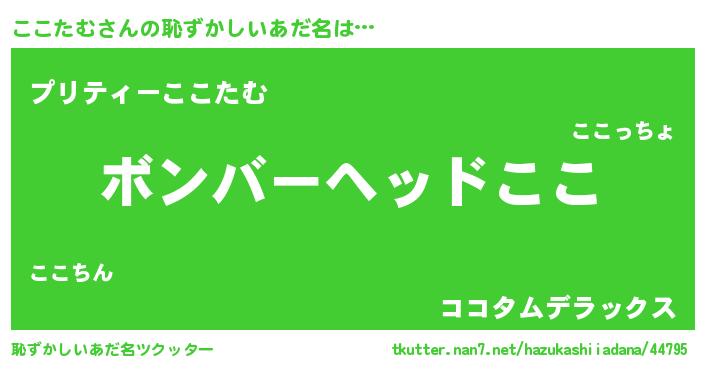 | ヒーロー風カッコイイあだ名 | 『慈愛の使者ここたむ』『ネオココタム』 |