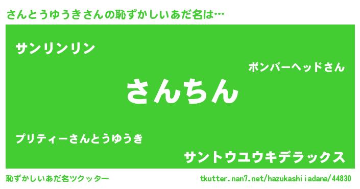 | ヘコむあだ名 | 『さんとうゆうき(笑)』『さんぷりん』 |