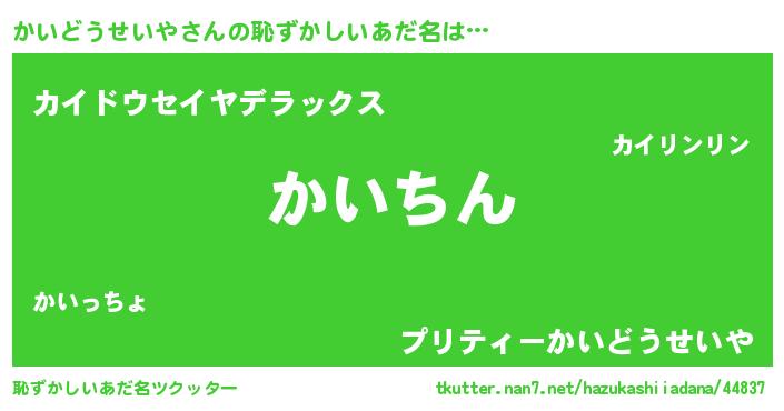 | ヘコむあだ名 | 『かいどうせいや(爆)』『かいにゅー』 |