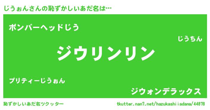 | 男性向けラノベタイトル風あだ名 | 『じうぉんに滅ぼされるだけの簡単なお仕事です』 |