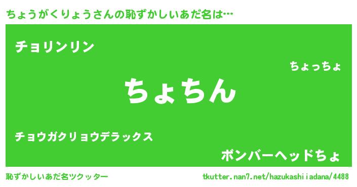 | ヒーロー風カッコイイあだ名 | 『ネオチョウガクリョウ』『仮面チョダー』 |