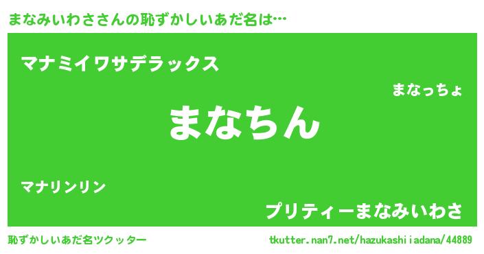 | ヘコむあだ名 | 『まなみいわさ(爆)』『まなっふぃ~』 |