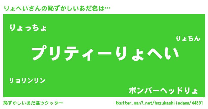 | 欧米人風あだ名 | 『マイケルりょへい』『ダニエルりょへい』 |