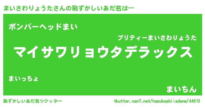 | ヘコむあだ名 | 『まいさわりょうた(遠い目)』『まいにゅー』 |