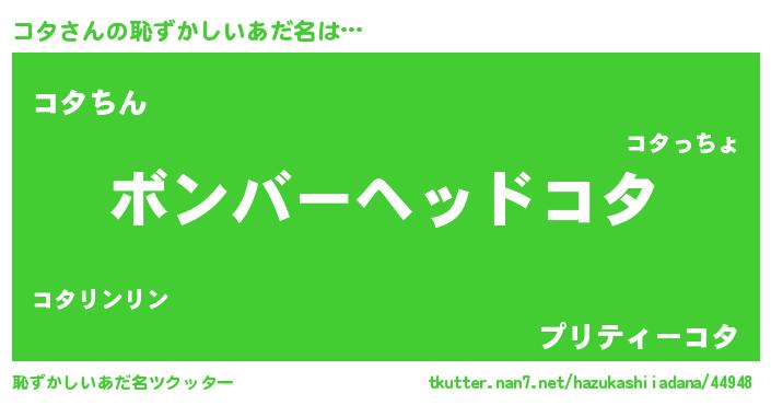 | ヘコむあだ名 | 『コタ(遠い目)』『コタにー』『豆乳』 |