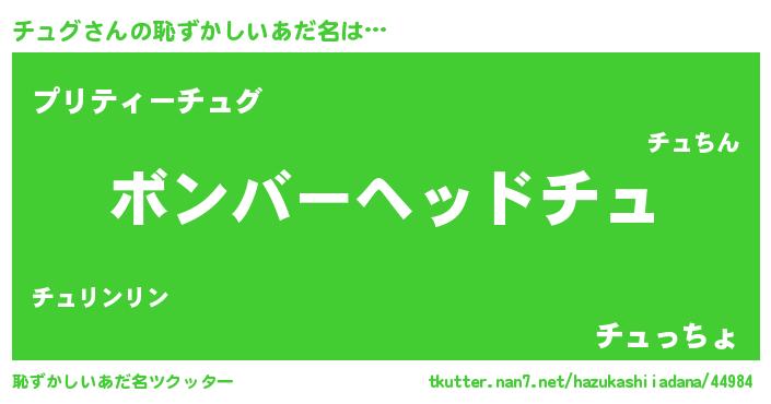 | ヘコむあだ名 | 『チュもー』『豆乳』『チュグ(笑)』 |
