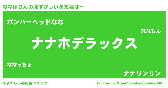 | ヒーロー風カッコイイあだ名 | 『仮面ナナダー』『サイバー戦士ナナホ』 |