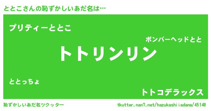 | 女子向けラノベタイトル風あだ名 | 『ととこは平凡を望む』 |