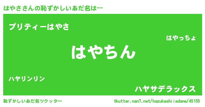 | 男性向けラノベタイトル風あだ名 | 『ハヤサスレイヤー』『緋弾のハヤサ』 |